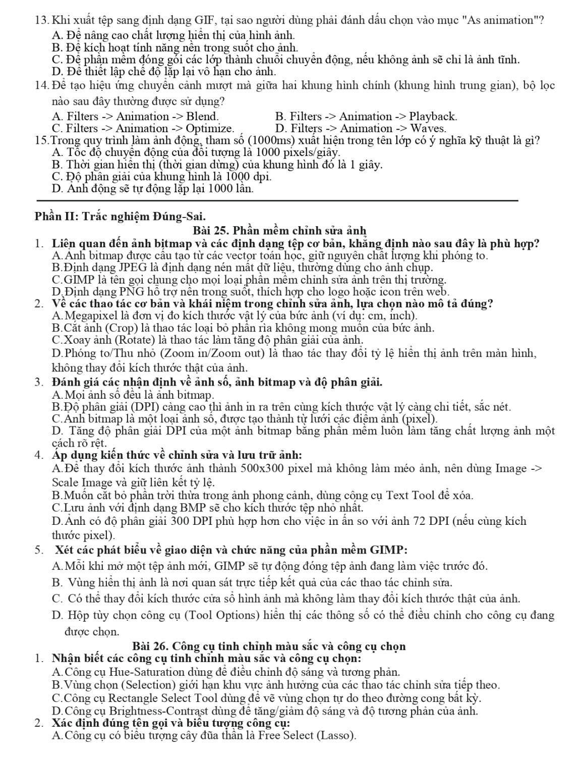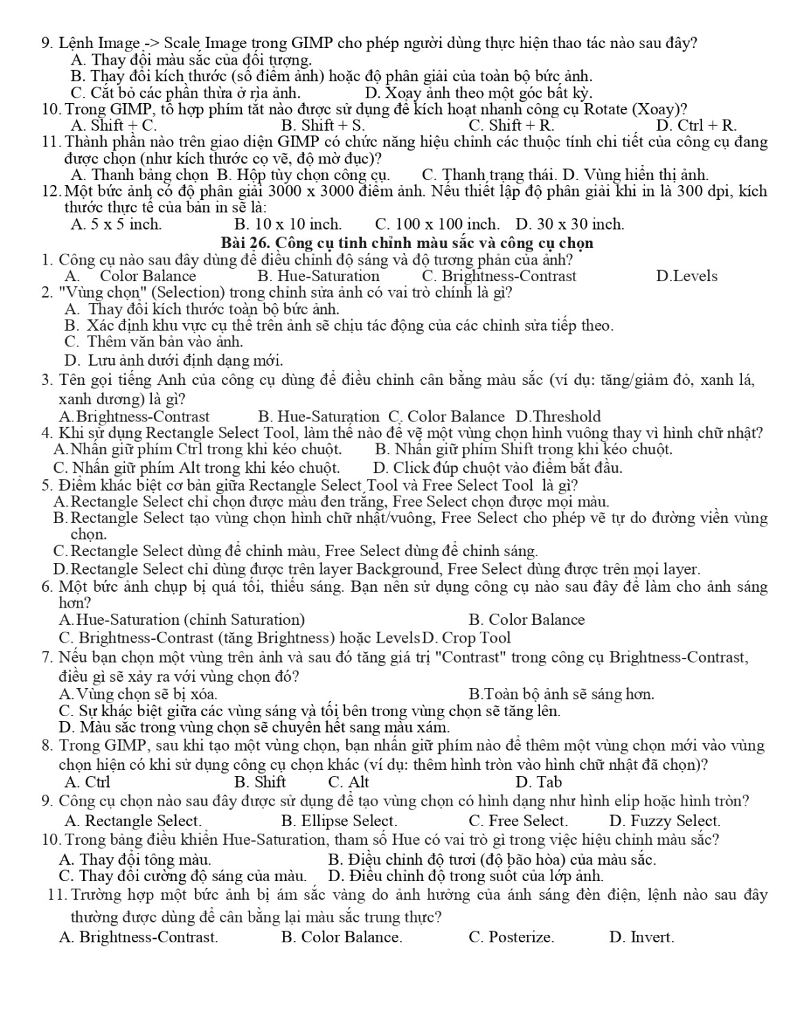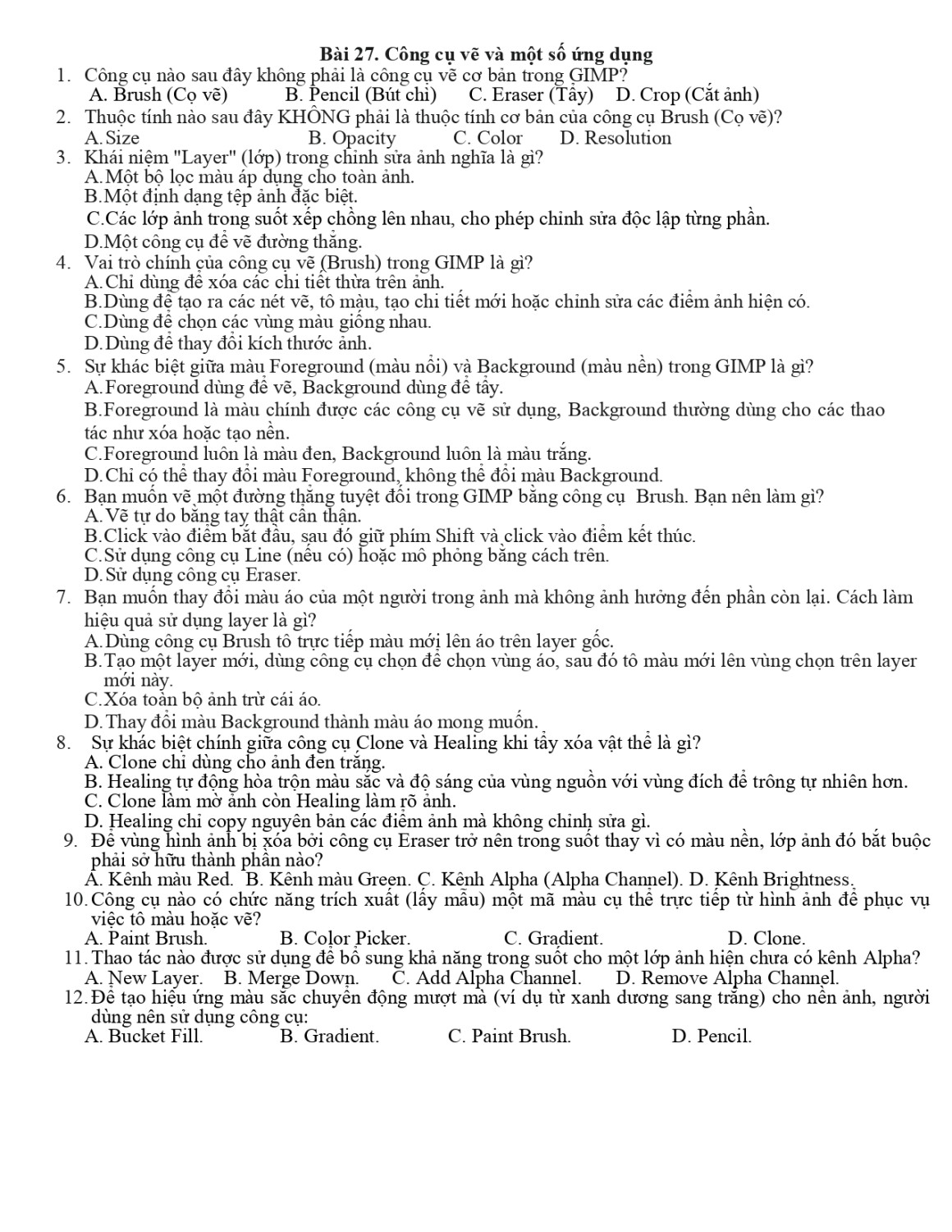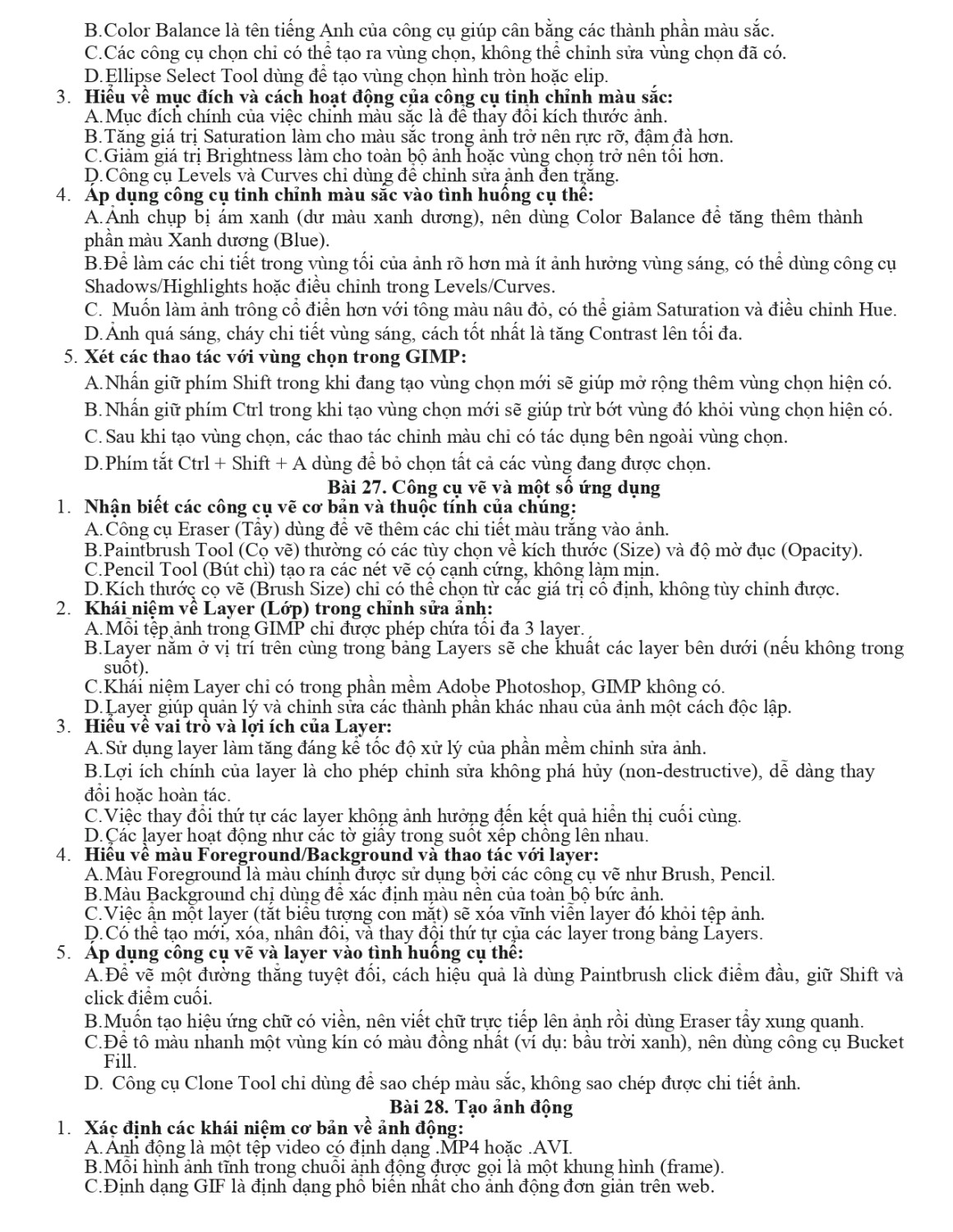 Đề cương tin học lớp 12 - GKI