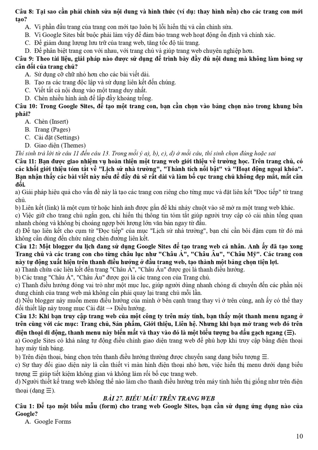 Đề cương ôn tập cuối kỳ I - tin học 10